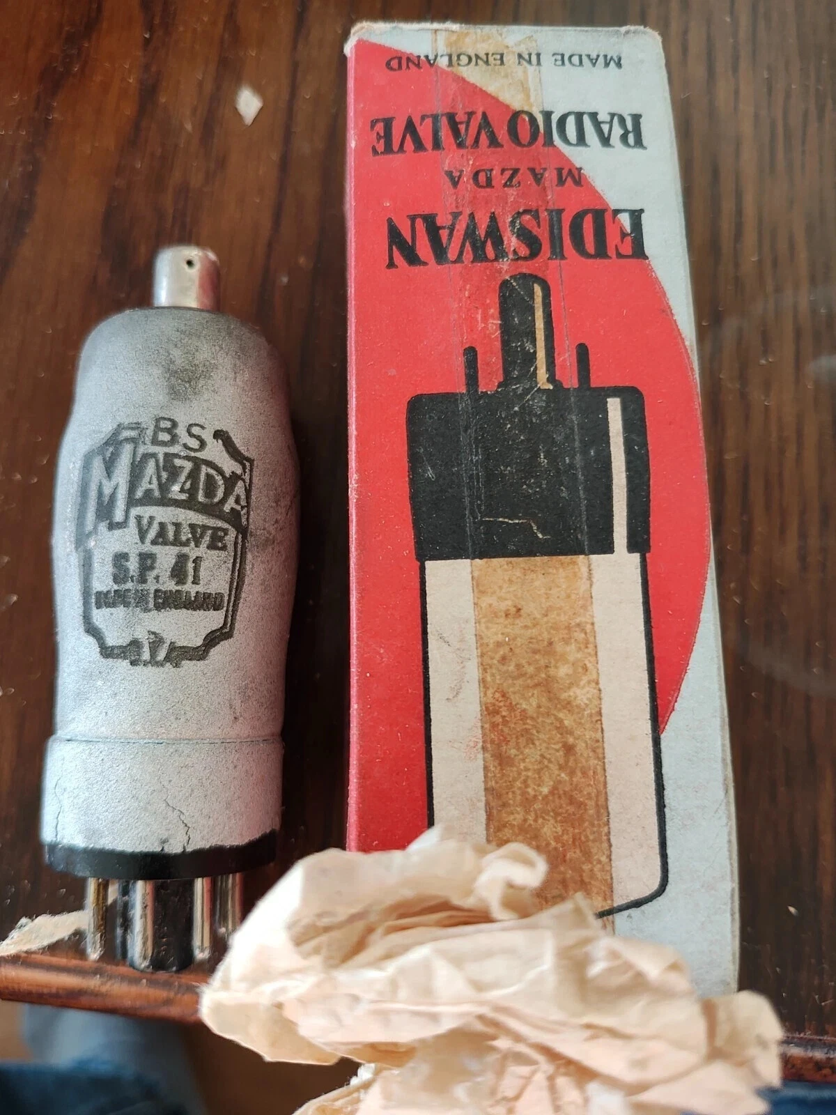 Although new old stock, in some cases with my valves, the boxes are in very poor condition or missing. Photos will give you an indication of the condition.